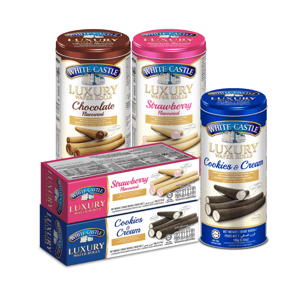 Enjoy the crispy crunch of White Castle Wafer Rolls, filled with rich, creamy fillings in assorted flavours. A light and satisfying snack perfect for daily enjoyment.